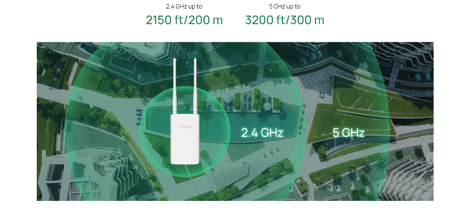 2 zewnętrzne anteny, potężne wzmacniacze i technologia Wi-Fi 6 zapewniają silny i rozległy zasięg sieci bezprzewodowej w wielu różnych środowiskach na zewnątrz budynku.*
