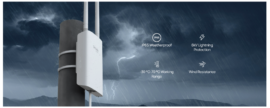 Szczelna obudowa punktu dostępowego EAP603-Outdoor zapewnia ochronę przed pyłem i możliwość zanurzenia go w wodzie. Urządzenie bez trudu poradzi sobie w trudnych warunkach panujących na zewnątrz budynku.