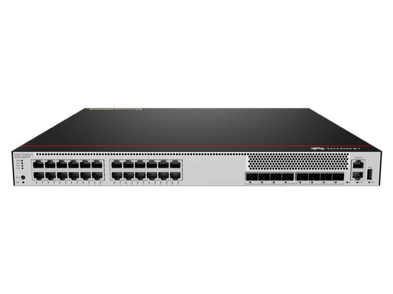 Huawei CloudEngine S5755-S24P8Y to zarządzalny switch klasy Enterprise. Jest wyposażony w 24 porty 1G Ethernet oraz 8 slotów SFP28 (przepustowość 25 Gb/s). Na wszystkich portach Ethernet znajduje się wyjście zasilania PoE+ (802.3af/at), moc wyjściowa na port uzależniona jest od standardu i wynosi 15,4 W przy 802.3af lub 30 W przy 802.3at. Łączny budżet mocy wyjściowej (na wszystkie porty) przy dwóch zasilaczach 600 W (i napięciu 220 V) wynosi 840 W. Switch zapewnia zaawansowane funkcje zarządzania, również w Layer 3. Wspiera tradycyjne protokoly STP (STP / RSTP / MSTP) oraz dodatkowo ERPS - ochronę przed pętlami. W celu zapewnienia bezpieczeństwa połączeń uplinkowych switch wykorzystuje Smart Link i VRRP (Virtual Router Redundancy Protocol). Dodatkowym atutem jest iStack - możliwość podłączenia kilku urządzeń w wirtualnym stosie, co ułatwia zarządzanie większymi sieciami i zwiększa ich skalowalność. Urządzenie wyróżnia się dużą wydajnością, posiada 4 rdzeniowy procesor o taktowaniu 1,2 GHz oraz 4 GB pamięci RAM, przepustowość przełączania wynosi 448 Gb/s. W zestawie znajdziesz dwa moduły zasilające AC o mocy 600 W.