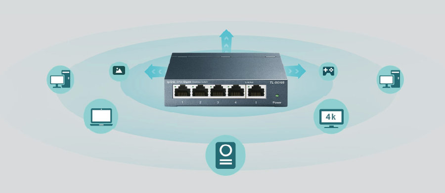 Wyposażony w 5 portów 10/100/1000 Mb/s przełącznik TL-SG105 zwiększa przepustowość sieci, umożliwiając błyskawiczne przesyłanie ciężkich plików, wymagających dużego pasma transmisji.