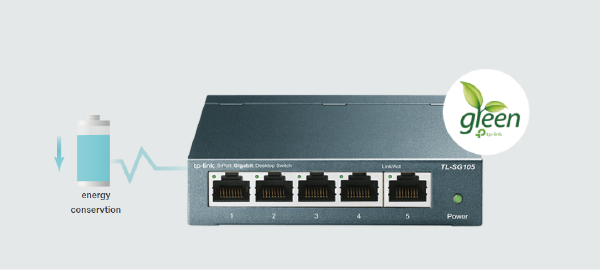 TL-SG105 to przełącznik wyposażony w 5 portów RJ45 10/100/1000 Mb/s. Gigabitowe porty umożliwiają stworzenie sieci o bardzo dużej wydajności, w zupełności wystarczającej dla zastosowań domowych i biurowych, dla których dedykowany jest produkt. Urządzenie jest energooszczędne, automatycznie dopasowuje wymagany pobór prądu w zależności od statusu połączenia i długości kabla. Nieużywane porty są odłączane od zasilania, a użycie krótszego kabla pozwala na mniejsze zużycie energii, z uwagi na niższe jej straty.