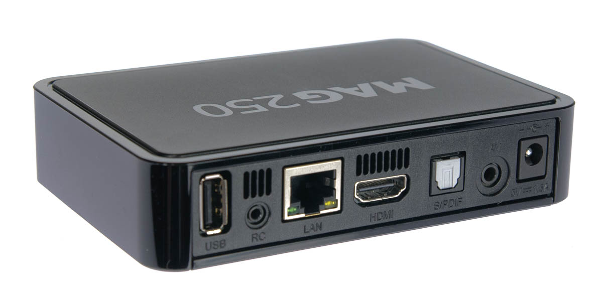 MAG250 zapewnia odpowiednią jakość i komfort użytkowania. Pozwala na uzyskanie obrazu i dźwięku w wysokiej jakości, wspiera nowoczesne formaty audio i video, a tym także FullHD. Można go podłączyć przez HDMI, jest również kompatybilny z telewizją RCA. Do portu USB można podłączyć zewnętrzną kartę sieciową (adapter) i uzyskać dostęp do sieci bezprzewodowej (WiFi).