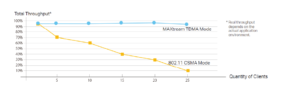 Całkowita przepustowość*Tryb MAXtream TDMATryb 802.11 CSMA
