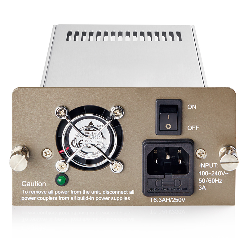 Zasilacz modułowy TL-MCRP100 konwertujący napięcie wejściowe 100-240 V 50/60 Hz na napięcie wyjściowe 9,5 V DC o mocy znamionowej do 102 W. Urządzenie posiada zabezpieczenie przeciwprzepięciowe, przeciwzwarciowe i nadprądowe. Moduł można zamontować w obudowie dla media konwerterów TL-MC1400.
