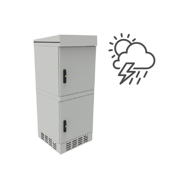 Szafa cechuje się stopniem ochrony IP54, jest przystosowana do wykorzystania na zewnątrz budynków. Konstrukcja jest zabezpieczona przed wnikaniem wody i pyłów. Jest to szafa wolnostojąca, możesz ją odpowiednio zakotwić do podłoża (np. betonowego), osadzić na studni telekomunikacyjnej lub na postumencie (sprzedawany osobno).