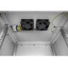 Producent zastosował dwie pary pełnych drzwi, które otwierają się do 120°. Szafa nie posiada żadnych dodatkowych, zdejmowanych osłon bocznych. W bocznych częściach cokołu umieszczono 4 otwory wentylacyjne (wysokość 144 mm), które zapewniają pasywne wentylowanie szafy. Dodatkowo w górnej części przewidziano 4 miejsca na montaż wentylatorów (średnica 125 mm) - możesz dokupić je dodatkowo jeżeli potrzebujesz aktywnego chłodzenia. Drzwi zostały zabezpieczone patentowym zamkiem zainstalowanym w uchylnej klamce, ryglowane są w trzech punktach.
