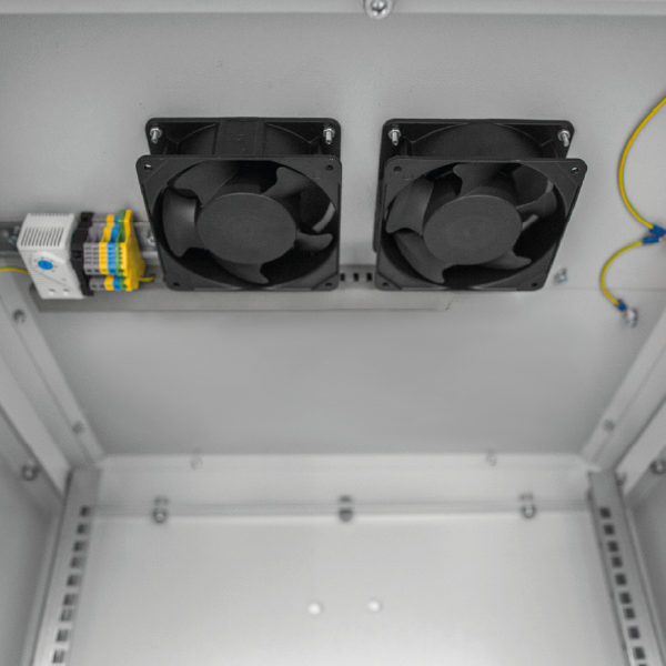 Oferowany produkt to dedykowany zestaw do wentylacji szaf wolnostojących marki Opton. Posiada 2 wentylatory oraz termostat, który włącza wentylację po przekroczeniu zadanej temperatury. Całość została umieszczona na szynie montażowej TH35, napięcie wejściowe wynosi 230 V AC.