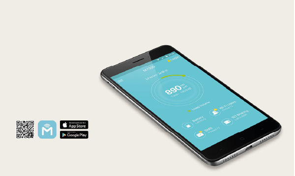 Dzięki mocnej baterii o pojemności 2000mAh, M7350 może działać do 8 godzin, pracując na pełnej mocy i do 480 godzin w trybie czuwania. Dzięki złączu micro USB baterię można łatwo naładować za pomocą kabla podłączonego do laptopa, ładowarki do smartfona albo dołączonego zasilacza.