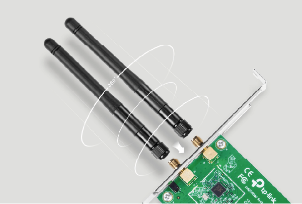Karta sieciowa TL-WN881ND wyposażona jest w dwie odłączalne anteny, których kierunek można w pełni dostosować do warunków otoczenia. W celu zwiększenia zasięgu sieci można je zastąpić między innymi antenami kierunkowymi.