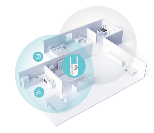 TL-WA860RE to urządzenie stworzone do zwiększania zasięgu i poprawiania sygnału sieci bezprzewodowej. Dwie zewnętrzne anteny dbają o to, aby dostęp do Wi-Fi był możliwy w każdym pomieszczeniu twojego domu, a wszystkie urządzenia mobilne, odtwarzacze multimedialne i komputery miały stałe połączenie ze stabilną siecią.