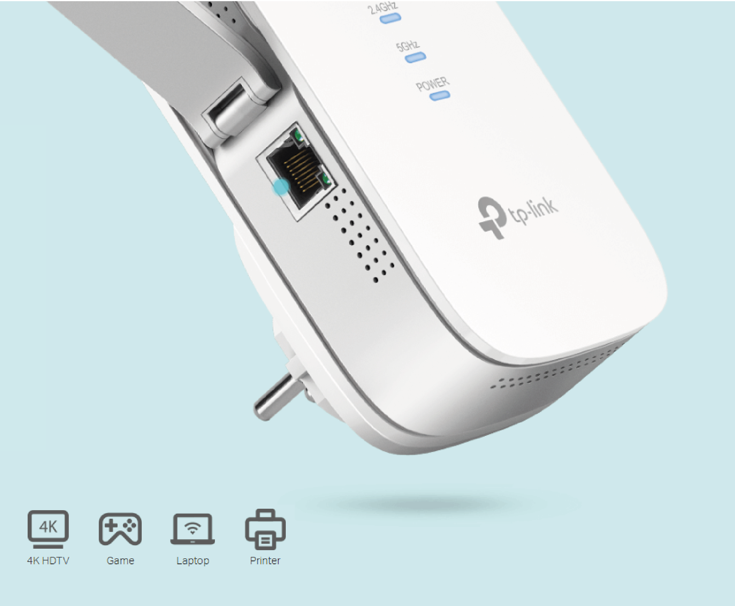 Urządzenie RE650 wyposażone jest w gigabitowy port Ethernet, co pozwala podłączać urządzenia przewodowe, takie jak konsole do gier lub telewizor smart, w celu utworzenia stabilnego połączenia przewodowego.
