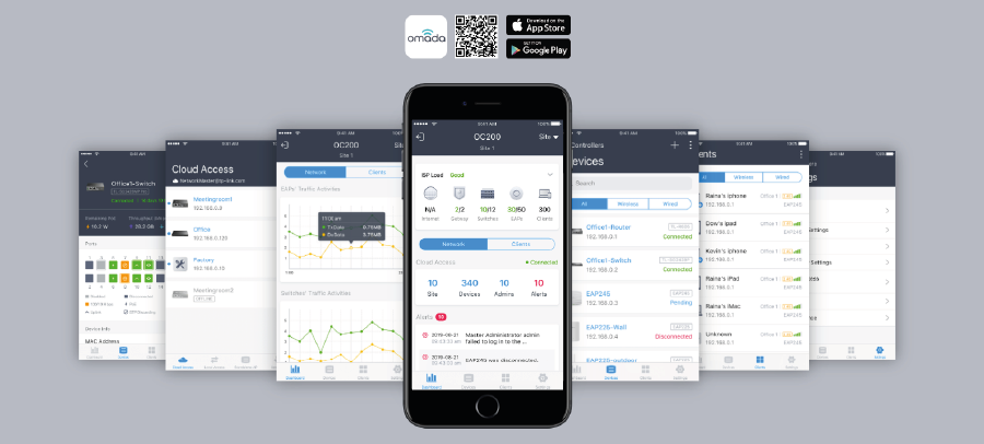 Pobierz bezpłatną aplikację Omada i zdalnie konfiguruj swoje urządzenia, monitoruj ruch sieciowy oraz zarządzaj klientami za pomocą smartfona lub tableta z dowolnego miejsca na świecie.