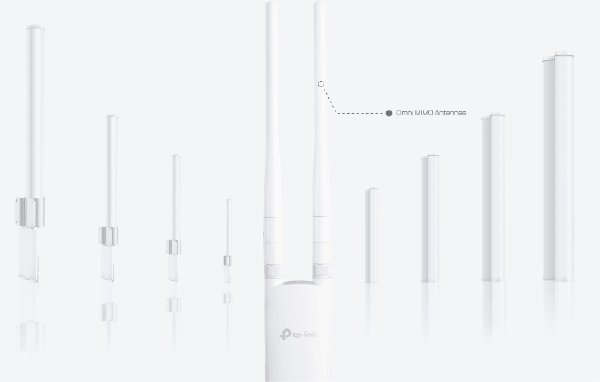 EAP225-Outdoor jest wyposażony w 2 odłączalne anteny dookólne, co oznacza, że możliwy jest także montaż innych anten, jeśli zaistnieje taka potrzeba.