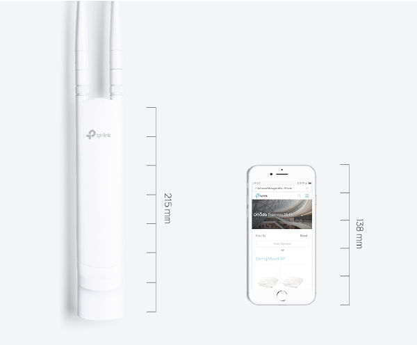 EAP225-Outdoor jest urządzeniem bardzo poręcznych, o wymiarach niewiele większych od smartfona: 215 × 46 × 27 mm.