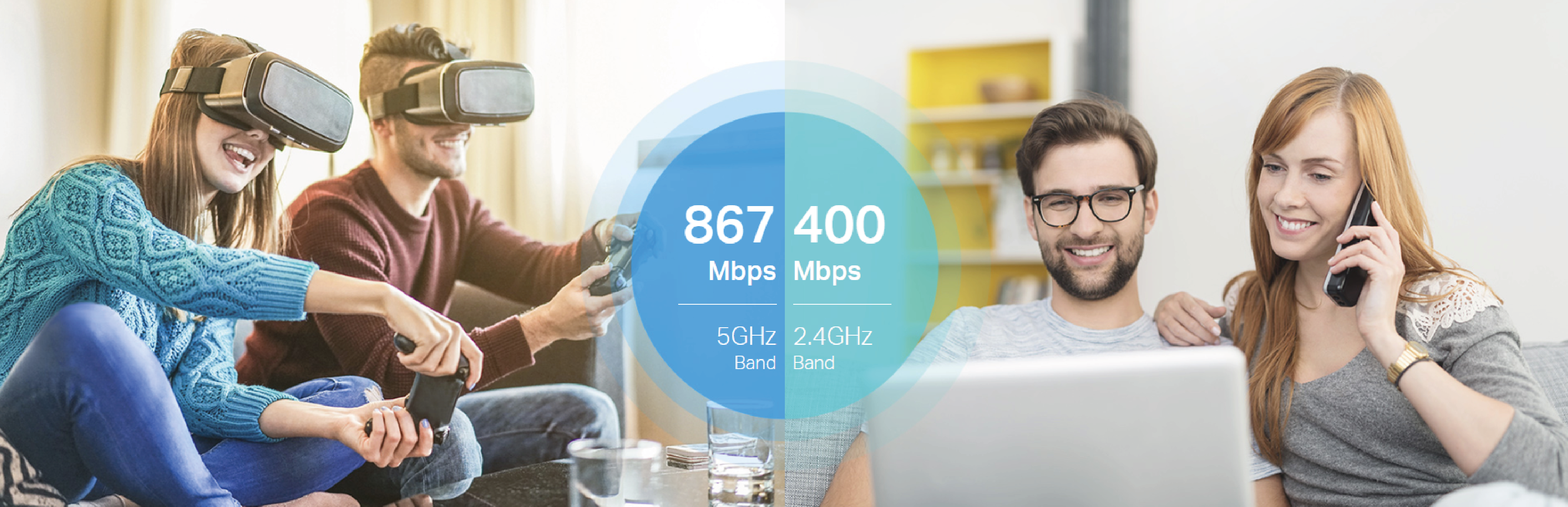Archer C6 rozgłasza dwie oddzielne sieci bezprzewodowe w pasmach 2,4GHz i 5GHz, zapewniając bardzo wysoką wydajność połączeń bezprzewodowych. Daje to możliwość jednoczesnego korzystania z dwóch dedykowanych sieci bezprzewodowych - o prędkościach odpowiednich dla nawet najbardziej wymagających zastosowań. Dzięki temu można korzystać z codziennych, mniej wymagających aplikacji, takich jak poczta elektroniczna czy przeglądarka internetowa, poprzez połączenie w paśmie 2,4GHz, przy jednoczesnym wykorzystaniu pasma 5GHz do bardziej wymagających, wrażliwych na opóźnienia zastosowań takich jak transmisje strumieniowe wideo w jakości HD lub gry online.