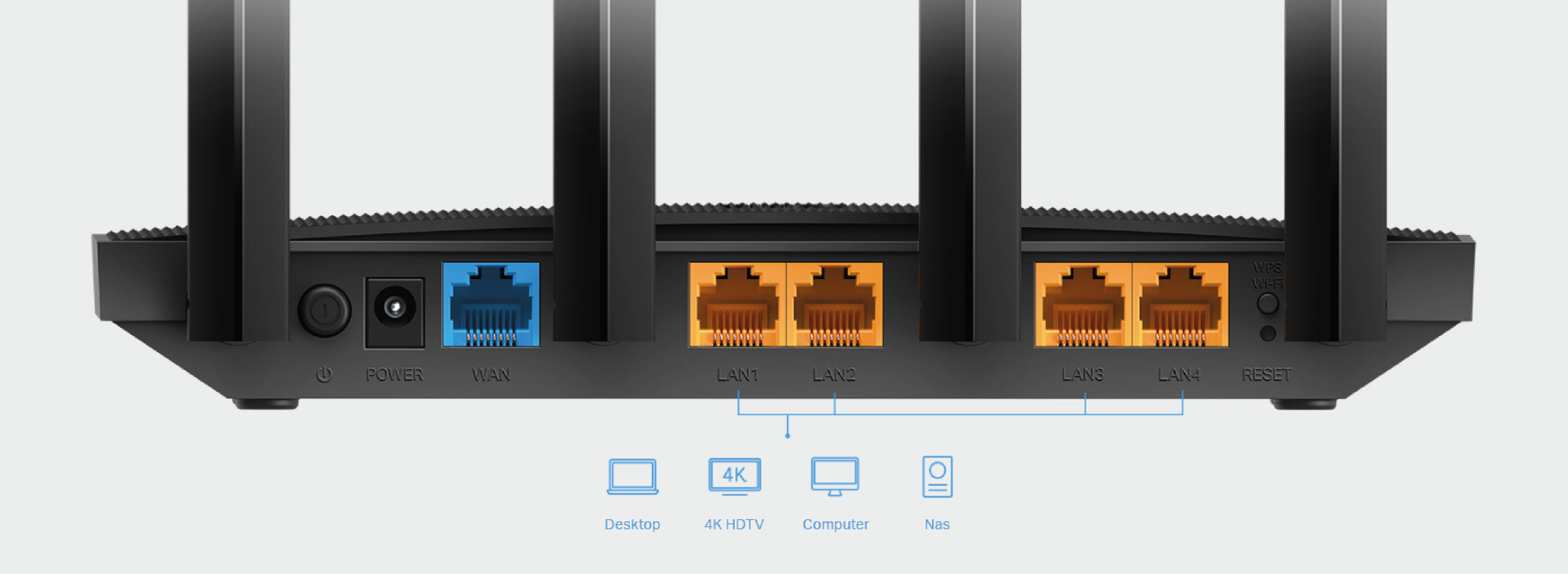 Dzięki jednemu gigabitowemu portowi WAN i czterem gigabitowym portom LAN połączenie może być dziesięciokrotnie szybsze niż w przypadku standardowych połączeń Ethernet. Podłącz swoje ulubione urządzenia przewodowe do Archera C6 - będziesz pod wrażeniem!