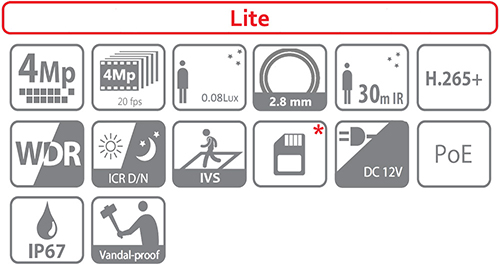 Kamera DH-IPC-HDBW1431E została wyposażona w przetwornik obrazu 1/3" 4MP Progressive Scan CMOS, który umożliwia zapis nagrań wideo z maksymalną rozdzielczością 4Mpx. Dostępne funkcje korekty, w tym WDR 120dB, 3DNR, zapewniają znakomitą jakoś otrzymywanego obrazu. Nowoczesny układ kompresji H.265+ sprawia, że przesyłany przez kamerę sygnał zajmuje mniej na miejsca na nośniku zapisu (np. dysku HDD), co przekłada się na skuteczną ochronę oraz dłuższy czas przechowywania danych. Dodatkowo stałoogniskowy obiektyw kamery 2.8mm umożliwia dokładne rejestrowanie obserwowanej sceny, a wbudowany oświetlacz podczerwieni o zasięgu 30m w technologii Smart IR gwarantuje prowadzenie całodobowego monitoringu z zachowaniem szczególności i czytelności uzyskiwanych nagrań. Urządzenie cechuje się dużym stopniem odporności na niekorzystne warunki atmosferyczne (IP67) oraz odporności mechanicznej na poziomie IK10.