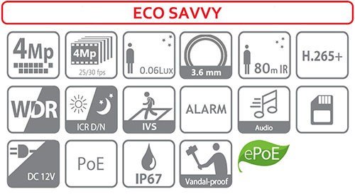Technologia ePoE jedno z nowszych rozwiązań dostępnych w produktach Dahua Technology. Innowacyjna funkcjonalność pozwala na podłączenie oraz zasilanie kamery IP kablem sieciowym bądź kablem koncentrycznym. Technologia Dahua ePoE przyjmuje zaawansowaną modulację kodowania 2D-PAM3 z warstwy fizycznej i realizuje transmisję w pełnym dupleksie powyżej 800 metrów z prędkością 10 Mb / s lub 300 metrów z szybkością 100 Mb / s za pośrednictwem skrętki komputerowej Cat.5 lub przewodu koncentrycznego. Dahua ePoE otwiera nowy sposób osiągania transmisji na duże odległości między kamerami IP i przełącznikami sieciowymi. Zapewnia także bardziej elastyczną konstrukcję systemu nadzoru, poprawia niezawodność i oszczędza koszty budowy i okablowania.Technologia ePoE działa tylko z urządzeniami ePoE