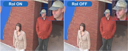 System Region of Interest umożliwia zwiększenie jakości nagrywanego obrazu we fragmentach obserwowanej sceny wskazanych przez użytkownika. Dzięki funkcji ROI realna jest ekonomiczna rejestracja nagrań i oszczędność całkowitej wielkości plików wideo z zachowaniem oryginalnej jakości obrazu w priorytetowych obszarach.