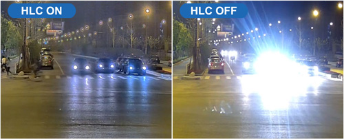 Algorytm wykrywa punkty obrazu, które są silnie oświetlone, a następnie maskuje je umożliwiając skuteczną obserwację. Tryb HLC jest niezwykle przydatny w przypadku obserwacji podziemnych parkingów. Umożliwia odczytanie numerów tablic rejestracyjnych, które są zasłonięte "jasnymi plamami" z reflektorów.