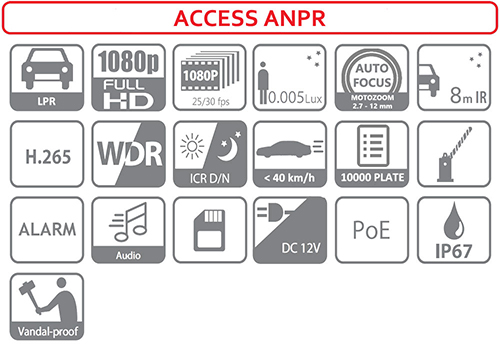 Kamera ITC237-PW1B-IRZ to nowoczesne rozwiązanie, w pełni wykorzystywane w strukturach monitoringu wizyjnego. Urządzenie stanowi element innowacyjnej serii Access ANPR marki Dahua, które umożliwia płynną analizę obrazu pod względem ruchu pojazdów. Kamera wyróżnia zastosowanie nowoczesnych funkcji analitycznych oraz usług związanych z funkcjami automatycznej detekcji numerów rejestracyjnych pojazdów. Kamera z serii ANPR zapewnią prosty sposób zoptymalizowania pracy parkingu miejskiego.