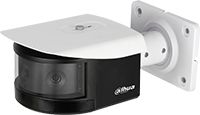 Kamera Multi Sensor DH-IPC-PFW8800P-H-A180 została wyposażona w wysokiej klasy 4 przetworniki obrazu 1/2.8" 2MP Starvis Progressive Scan CMOS, który każdy umożliwia zapis nagrań wideo z rozdzielczością 2Mpx (łącznie 8Mpx). Czułość w technologii Starlight oraz liczne dostępne funkcje korekty, w tym DWDR, 3DNR, zapewniają znakomitą jakoś otrzymywanego obrazu. Nowoczesny układ kompresji H.265+ sprawia, że przesyłany przez kamerę sygnał zajmuje mniej na miejsca na nośniku zapisu (np. dysku HDD lub karcie microSD), co przekłada się na skuteczną ochronę oraz dłuższy czas przechowywania danych. Każdy z trzech przetworników na swoim wyposażeniu posiada obiektyw o ogniskowej 3.0 mm. Połączenie takiego rozwiązania zapewnia uzyskanie panoramicznego obrazu 180°. Oświetlacz podczerwieni o zasięgu 30m w technologii Smart IR gwarantuje prowadzenie całodobowego monitoringu z zachowaniem szczególności i czytelności uzyskiwanych nagrań. Funkcje: inteligentne systemy analizy obrazu oraz inteligentna analiza biznesowa zwiększają poziom bezpieczeństwa i gwarantują wykrycie wszystkich niepożądanych zachowań. Atutem urządzenia jest również wbudowany slot na kartę microSD (128 GB), wejścia / wyjścia alarmowe oraz grzałka. Kamera megapikselowa IPC-PFW8800P-H-A180 może być zasilana na dwa sposoby: napięciem zmiennym 24V oraz poprzez kabel sieciowy (PoE+).