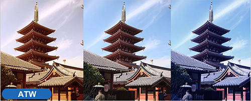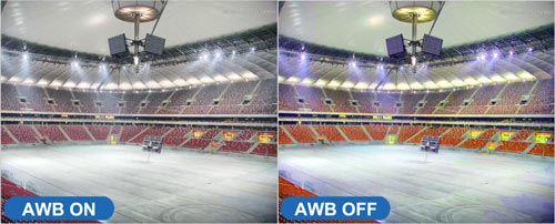 Inteligentny system automatycznego balansu bieli umożliwia reprodukcję materiału wideo z zachowaniem naturalnych proporcji odcieni barwy białej. Funkcja AWB analizuje otoczenie pracy kamery i samoczynnie dostosowuje parametry obrazu.