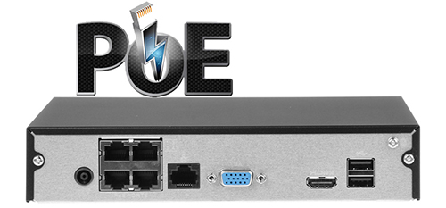 Jedną z cech które wyróżniają prezentowany rejestrator jest zastosowanie w nim 8-portowego switcha z obsługą technologii PoE. Oparty na protokole 802.3at/af wewnętrzny switch umożliwia zasilanie poszczególnych urządzeń peryferyjnych mocą dochodzącą do wartości 72 W.