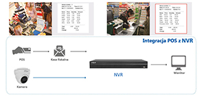 Możliwość współpracy rejestratora z terminalami POS. Każda transakcja kasowa jest odnotowana w systemie i przypisywana do konkretnego materiału wideo. Pozwala to na znaczne zwiększenie wykrywalności pomyłek i kradzieży.