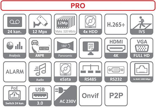 Dahua DHI-NVR5424-24P-4KS2 to wysokiej klasy urządzenie, które umożliwia rejestrowanie i wyświetlanie obrazu w ultra wysokiej rozdzielczości 4K. Rejestrator posiada na wyposażeniu dwa wyjścia wideo w standardzie HDMI (jeden z obsługą rozdzielczości 3840 × 2160, zaś drugi 1920 × 1080) oraz jedno złącze VGA. Obraz w standardzie UHDTV (Ultra High Definition Television) wyświetlany jest w formacie 16:9, cechuje się bardzo dużą szczegółowością, zachowaniem naturalnej palety barw oraz dużą płynnością animacji.