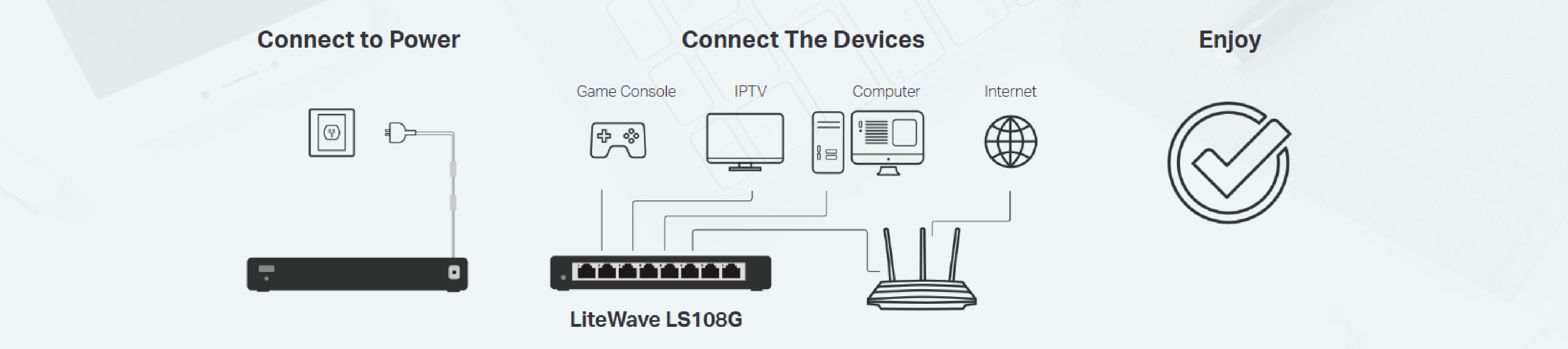 Niezarządzalne przełączniki z serii LiteWave TP-Link to łatwy i korzystny cenowo sposób rozbudowy sieci przewodowej. Urządzenia nie sprawiają trudności w użytkowaniu i są niezawodne. Dzięki instalacji typu plug and play, podłączanie nowych urządzeń trwa zaledwie kilka minut. Wszystkie porty obsługują Auto-MDI/MDIX, dlatego nie trzeba tracić czasu na wybór odpowiedniego kabla.