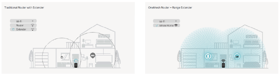 - Łatwa instalacja Router OneMesh™ + wzmacniacz OneMesh™