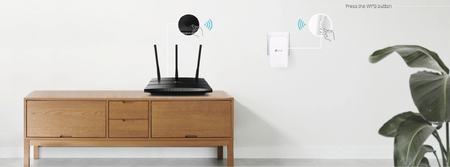 Krok 1: Aby połączyć się z siecią, naciśnij przycisk WPS na routerze i – w przeciągu 2 minut – przycisk WPS na RE300.