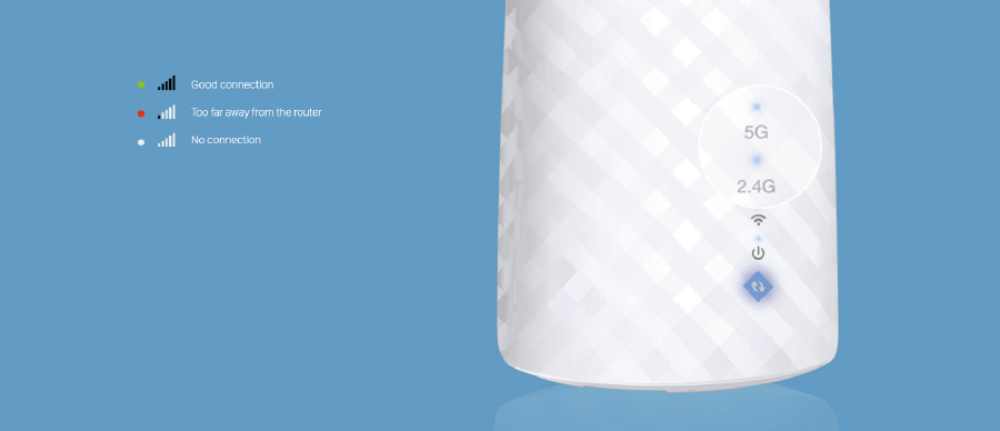Inteligentny wskaźnik siły sygnału sieci bezprzewodowej pomaga znaleźć optymalną lokalizację dla wzmacniacza RE190.
