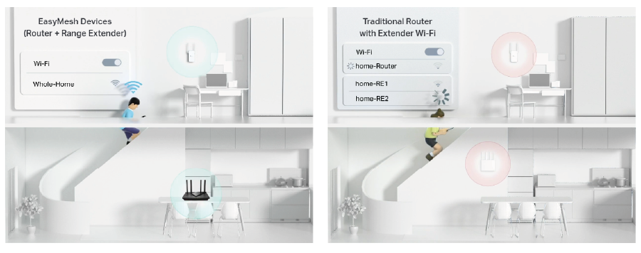 Jeśli w Twoim domu występują martwe strefy zasięgu, po prostu dodaj kolejne urządzenia kompatybilne z EasyMesh, aby rozbudować domową sieć WiFi Mesh. Zapomnij o szukaniu stabilnego sygnału połączenia.