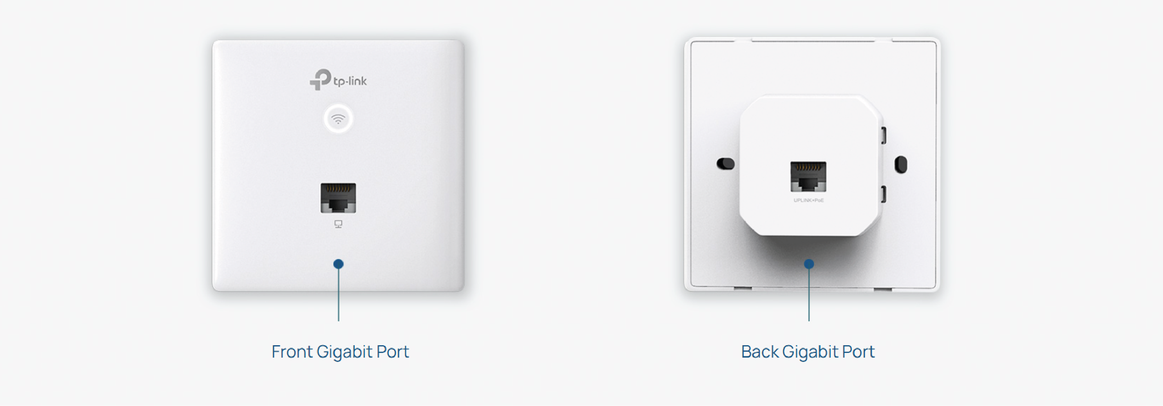 EAP230-Wall wyposażony jest w porty gigabitowe, aby zapewnić możliwie najszybszą transmisję danych dla połączeń przewodowych.