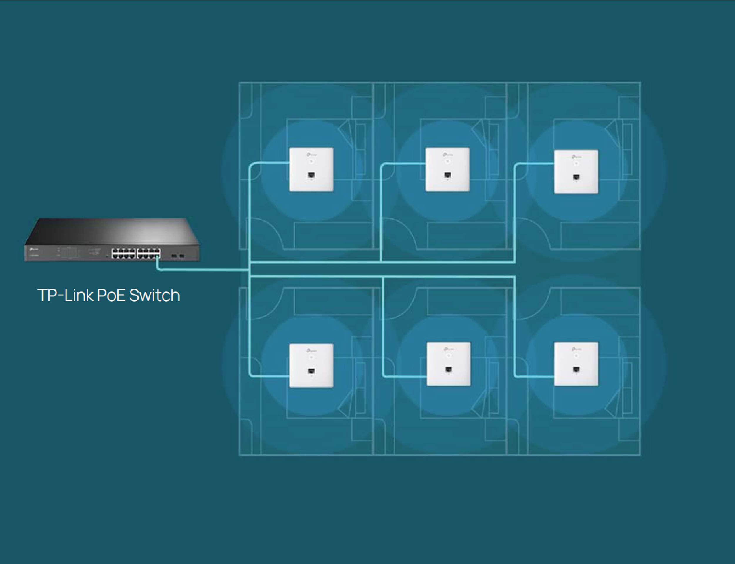 EAP230-Wall to rozwiązanie sieciowe, które idealnie sprawdzi się w budynkach podzielonych na wiele osobnych stref, takich jak hotele, biura oraz akademiki. Umieszczenie urządzenia EAP w każdym pomieszczeniu gwarantuje silny sygnał sieci i umożliwia gościom korzystanie z prywatnych połączeń.
