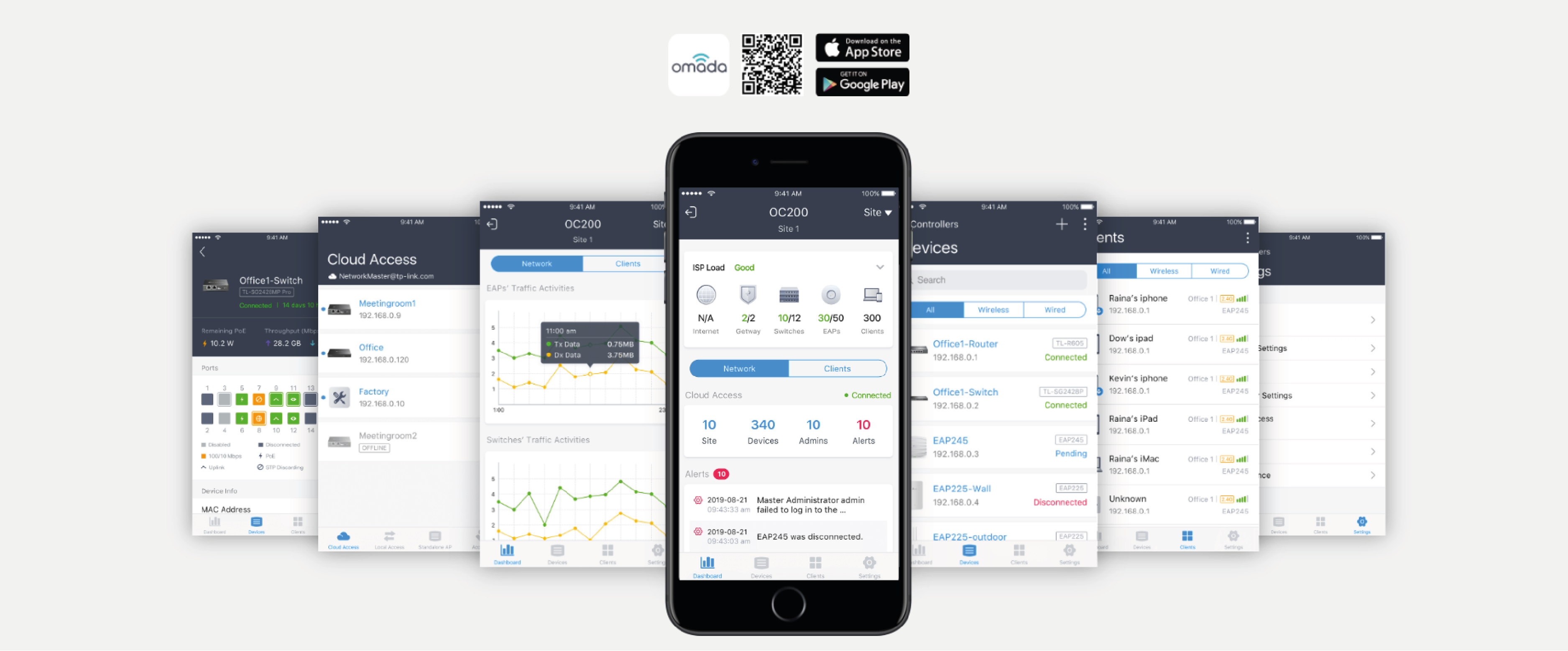 Narzędzia stworzone z myślą o przełącznikach EAP — kontroler sprzętowy Omada OC200 oraz oprogramowanie Omada Controller — to duże ułatwienie w zarządzaniu i monitorowaniu sieci Omada w czasie rzeczywistym. Natomiast dzięki usłudze cloud bezpieczny dostęp do platformy zarządzania można uzyskać z dowolnego miejsca.