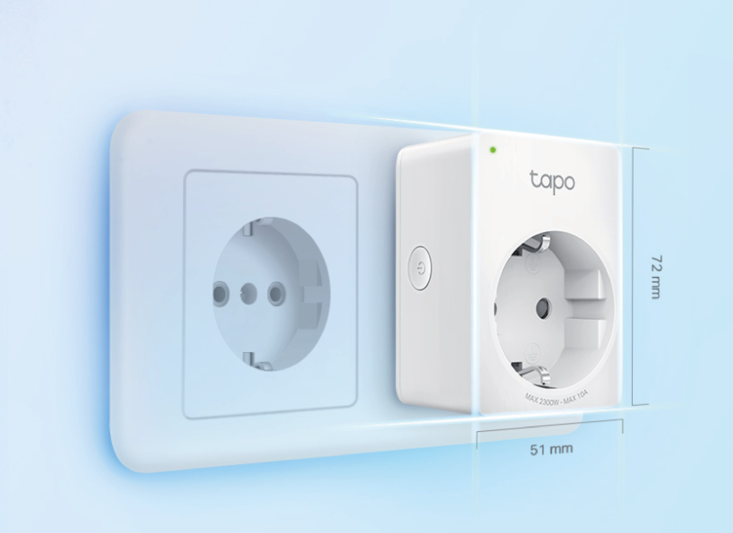 Dzięki swoim niewielkim rozmiarom Tapo P100 nie utrudnia dostępu do sąsiedniego gniazdka.