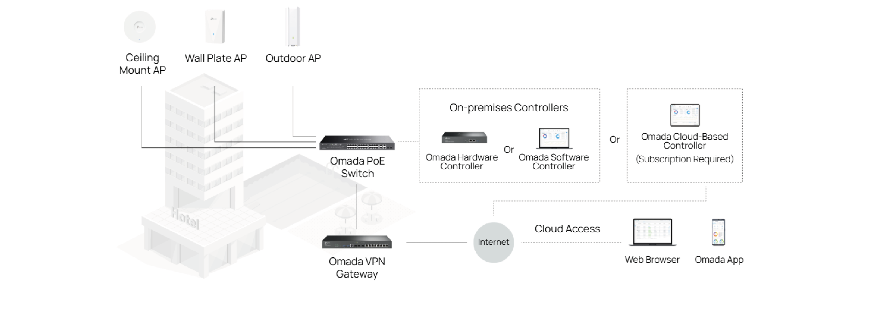 Zarządzaj zdalnie swoimi Punktami dostępowymi, Przełącznikami i Bramami sieciowymi znajdującymi się w wielu lokacjach z poziomu jednego interfejsu.