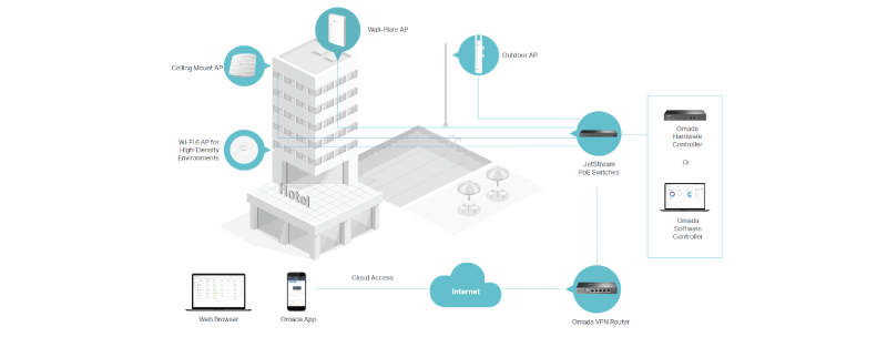 | Zarządzanie centralne | Kontroler Omada oparty na chmurze Kontroler sprzętowy Omada (OC300) Kontroler sprzętowy Omada (OC200) Kontroler programowy Omada |