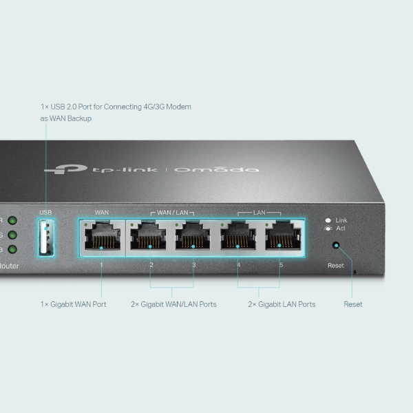 - Do 4 portów WAN: 1 gigabitowych port WAN i 3 gigabitowe porty WAN/LAN pozwalają zoptymalizować wykorzystanie pasm.