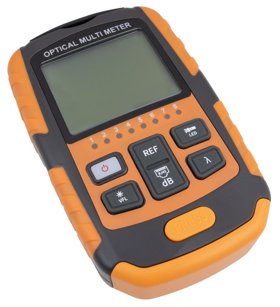 Opton OMM-10A to miernik mocy optycznej z wbudowanym testerem RJ45. Urządzenie pracuje w zakresie mocy od -70 do 6 dBm, jego dużą zaletą jest uniwersalność - jest kompatybilny z falami o długości: 850 / 980 / 1270 / 1300 / 1490 / 1310 / 1550 / 1577 / 1625 / 1650 nm. Posiada również wbudowany tester RJ45, który sprawa połączenie pomiędzy poszczególnymi żyłami. Dodatkowym atutem jest światło LED, które może ułatwić podłączenie kabla do miernika.