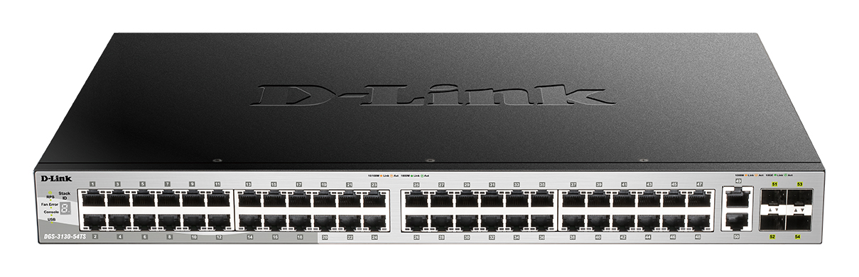 D-Link DGS-3130-54TS/SI to zarzadzalny switch wyposażony w 48 gigabitowych portów Ethernet (1 Gb/s), 2 porty 10G Ethernet oraz 4 sloty SFP+ (10 Gb/s). Urządzenie posiada wbudowany zasilacz AC, maksymalny pobór mocy wynosi 50,62 W. Opcjonalnie może być zasilany poprzez złącze RPS, przy użyciu zasilacza DPS-500A. Wewnątrz obudowy znajdują się 2 wentylatory, których prędkość dostosowuje się do obciążenia. Wydajność przełączania wynosi 216 Gb/s, a prędkość przekazywania pakietów 161 Mp/s (dla pakietów 64 B).
