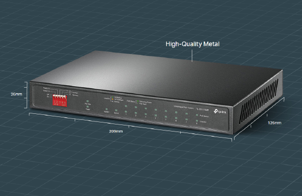 Ochronę dla wrażliwych komponentów przełącznika stanowi wytrzymała obudowa, wykonana z metalu wysokiej jakości. Tak solidne zabezpieczenie gwarantuje wieloletnią i stabilną pracę urządzenia. TL-SG1210MP to produkt niezawodny, co potwierdzają liczne testy bazujące na rygorystycznych standardach.
