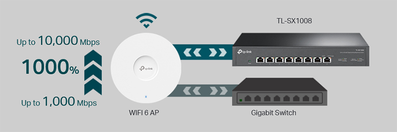 Wiele punktów dostępowych w standardzie WiFi 6 posiada port o przepustowości wyższej niż 1 Gb/s. Wyższa prędkość połączenia Ethernet pozwoli ci w pełni wykorzystać możliwości oferowane przez standard 802.11ax.