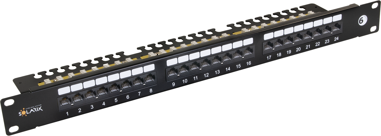 Solarix SX24L-6-UTP-BK-N patch panel 24x U/UTP RJ45, kat. 6, Rack 19" 1U