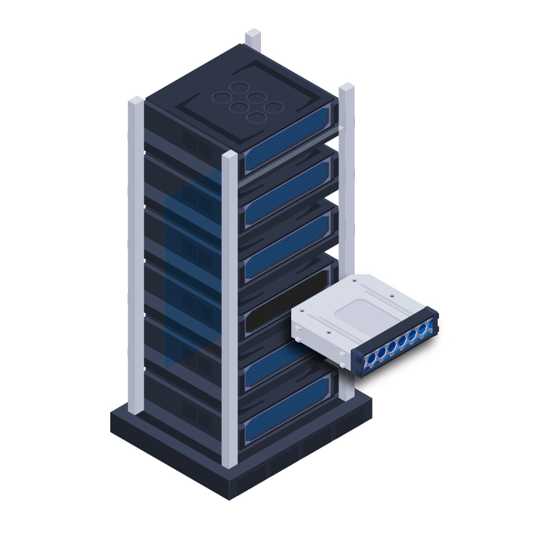 Panel frontowy został przystosowany do zamontowania 48 adapterów SC Duplex lub LC Quad. Wewnątrz przełącznicy znajdziesz miejsce do zamontowania tacki spawów oraz odpowiednie przetłoczenia, do których można przymocować zapas kabla korzystając z opasek zaciskowych. Należy stosować tacki, które posiadają otwór na śrubę. Z tyłu znajdują się cztery otwory do przeprowadzenia okablowania. Dwa z nich zostały fabrycznie zabezpieczone dławikami.